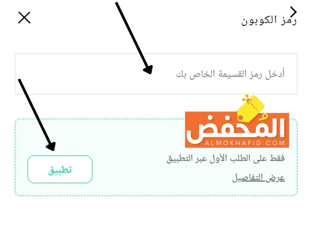 6. سجل رمز الكوبون المتوفر في موقع المُخفض، ثم انقر على إضافة.