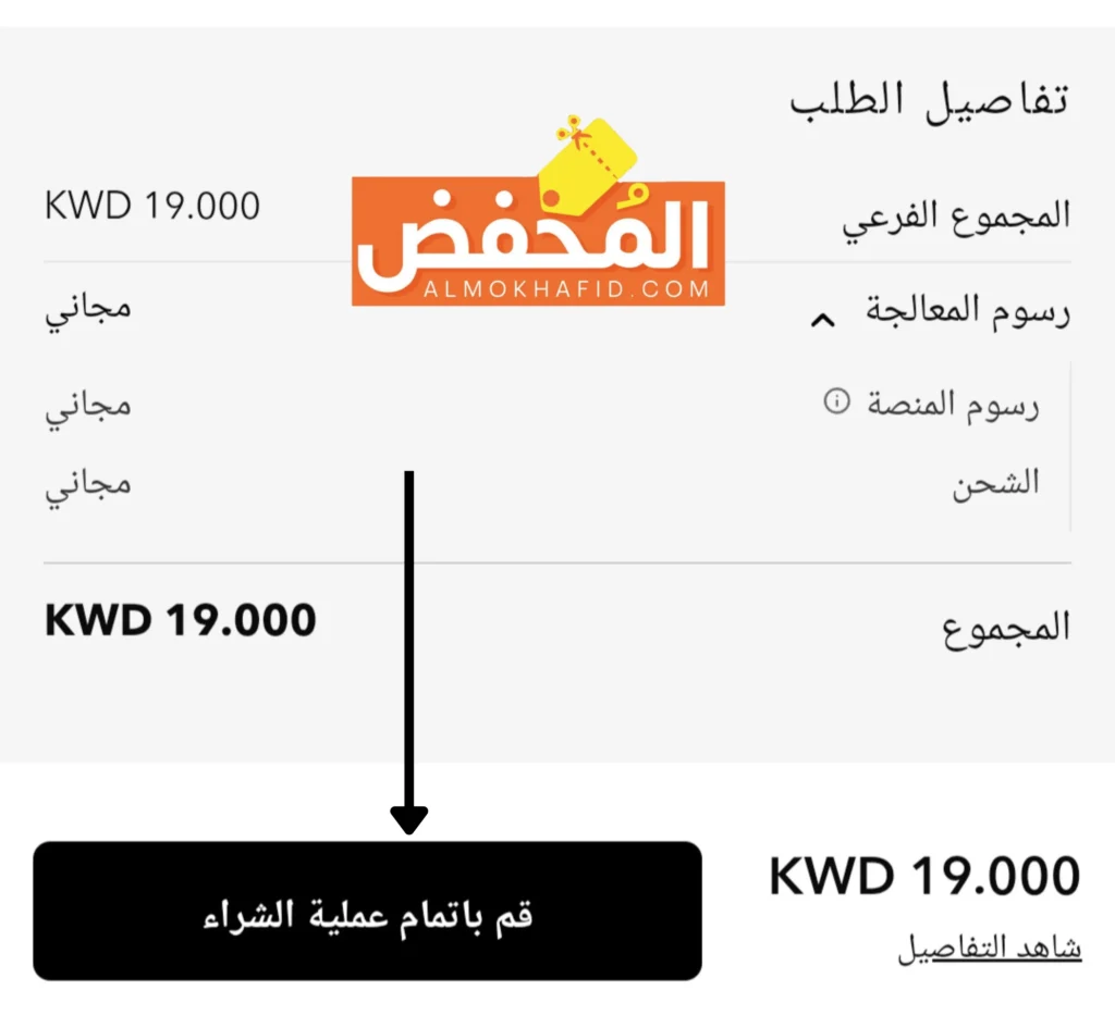 . وفي النهاية انقر على قم بإتمام عملية الشراء، واختر وسيلة الدفع المناسبة لك وبياناتك المطلوبة مثل الاسم والعنوان ورقم الهاتف ليتواصل معك مندوب الشحن.