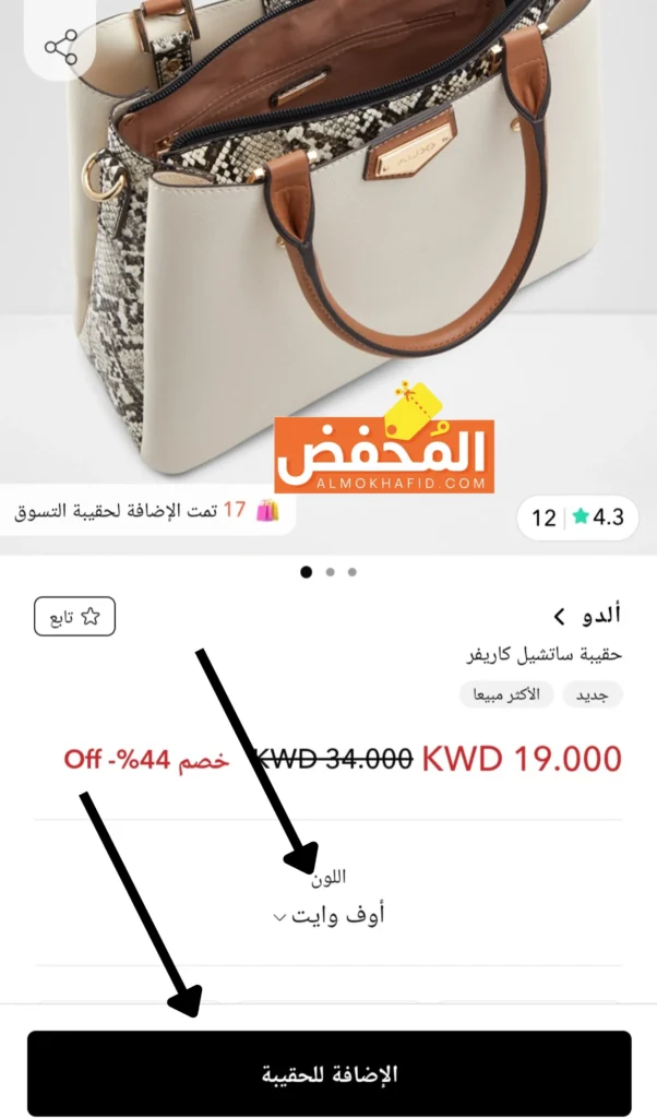 4. حدد العدد، المقاس، اللون، ثم انقر على أضف إلى الحقيبة.
