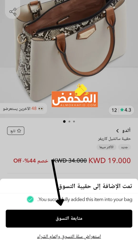 5. انقر على متابعة التسوق إذا رغبت في إضافة المزيد من المنتجات أو اضغط على استعراض سلة التسوق وإتمام الشراء، إذا أردت إنهاء عملية التسوق.