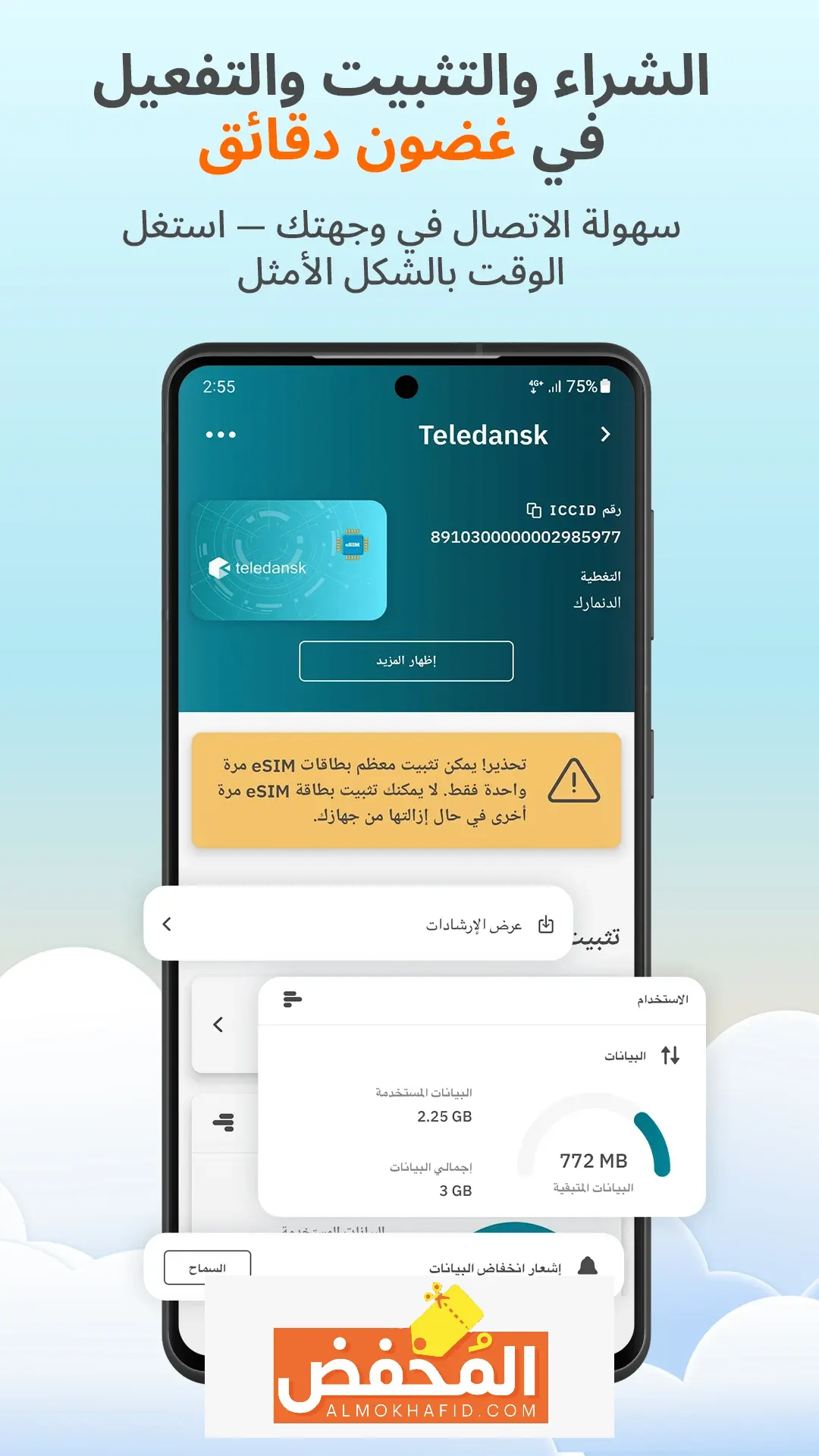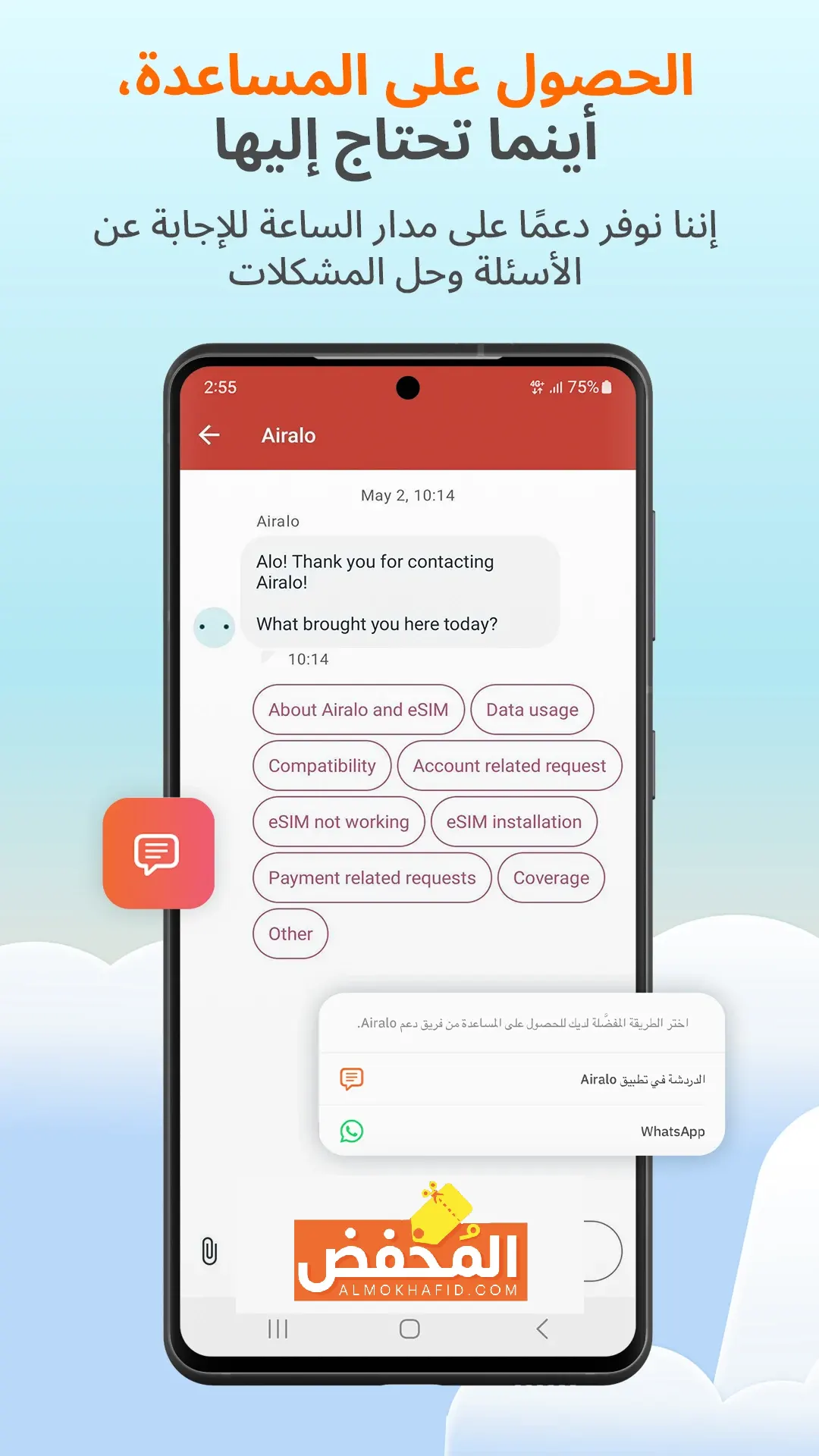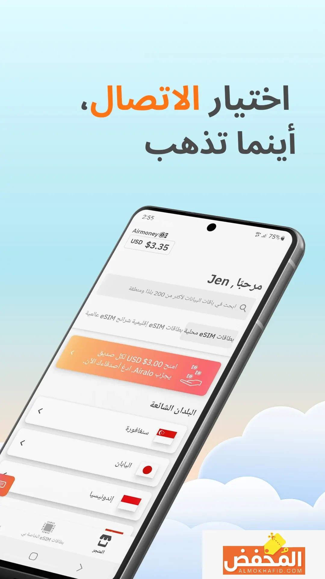 من خلال استخدام كود خصم Airalo عند شراء بطاقتك الذكية، ستتمكن من الاتصال بأفراد عائلتك وأصدقائك والاطمئنان عليهم بسهولة، يتيح لك تطبيق ايرالو خصومات تصل إلى 25% عند شراء بطاقات eSIM، كل ما عليك فعله هو تطبيق كود الخصم والاستمتاع بمكالمات عالية الجودة، بواجهة سهلة الاستخدام دون أي تعقيدات.