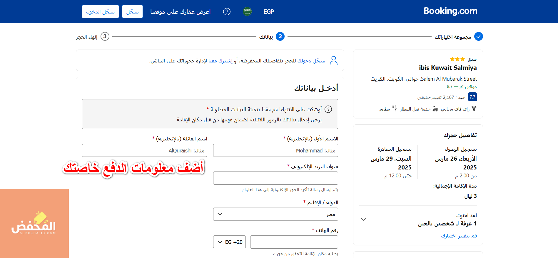 انسخ والصق هذا الكود في بوكينج | Booking