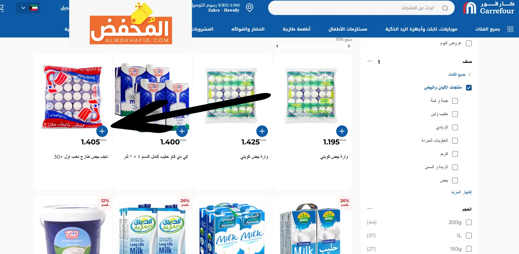 تصفح قسم العروض والتخفيضات على موقع كارفور الإلكتروني أو التطبيق الخاص بهم.