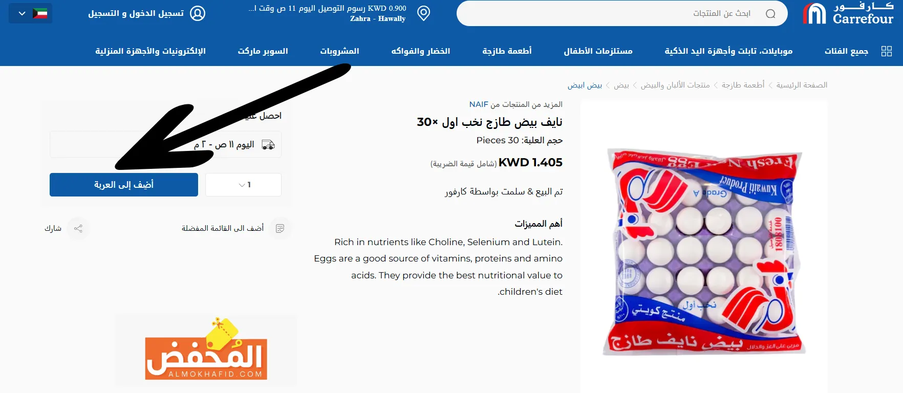 يتم نقلك تلقائيًا إلى متجر كارفور Carrefour الإلكتروني لتتمكن من شراء أغراضك.