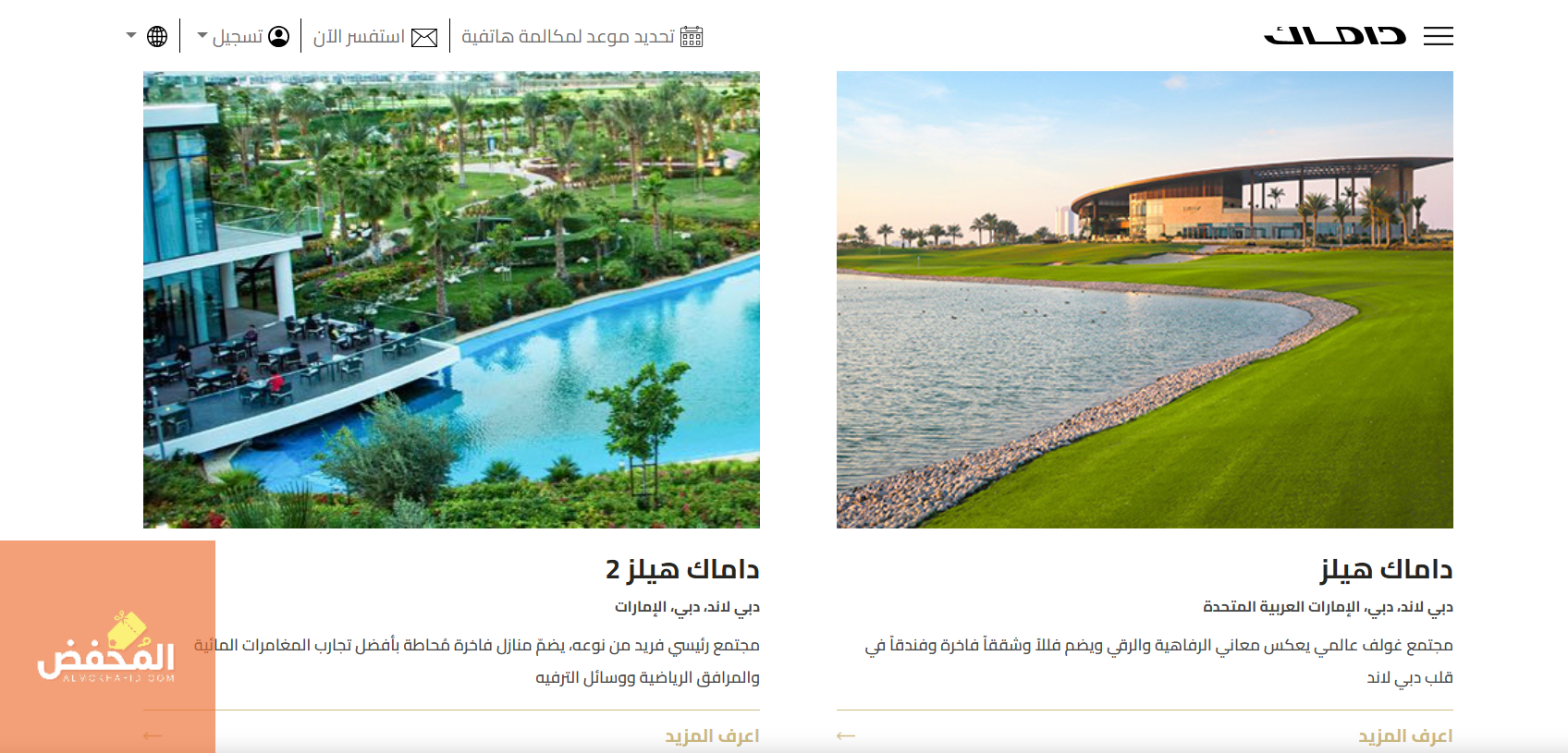 1- ادخل إلى الموقع الرسمي لمنصة داماك العقارية، ويفضل استخدام التطبيق الرسمي للاستفادة من خصائص كود الخصم بسهولة أكبر من الموقع الرسمي.