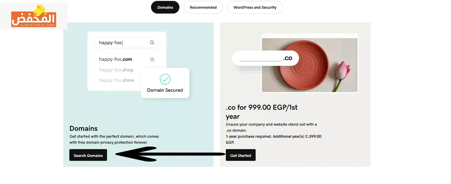 تتمكن من حجز نطاق جودادي بكل سهولة من خلال الدخول الى متجر جودادي والتحقق من أن اسم النطاق الذي ترغب به متوفر من خلال الكتابة بمحرك البحث وانتظار الاجابة، حيث أنه في حالة أن كان النطاق متوفر سوف تتمكن من حجزه بكل سهولة من خلال اتباع الخطوات وبعد ذلك ربطه بالموقع الخاص بك، وفي حالة أن لم يكن متوفر يقترح عليك الموقع بعض النطاقات المشابهة والمتوفرة.
