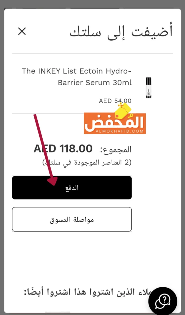 4. اضغطي على الدفع، أو مواصلة التسوق إذا أردت طلب المزيد من المنتجات.