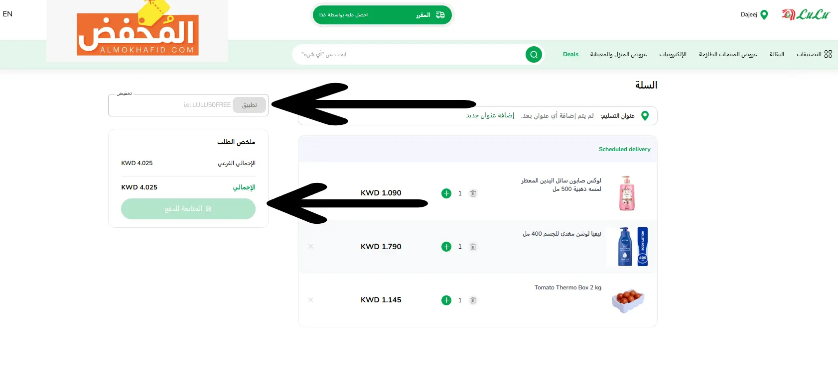 يقدم موقع Lulu Hypermarket خصم خاص بنسبة 10% على جميع المنتجات المتاحة عبر الإنترنت، وذلك عند استخدام كود خصم لولو هايبر ماركت أثناء إتمام عملية الدفع، المتاح لجميع العملاء في كافة أنحاء الكويت.