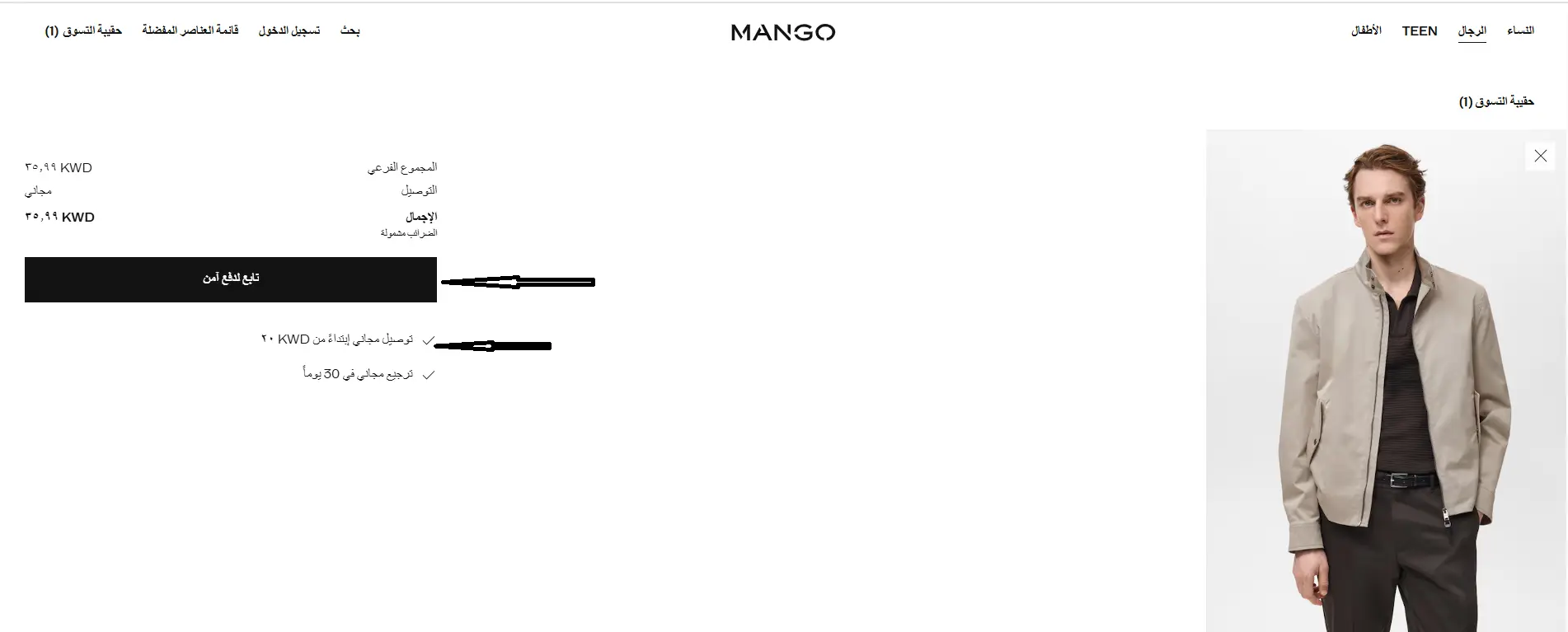 ادخل على متجر مانجو الإلكتروني أو افتح التطبيق على هاتفك المحمول.