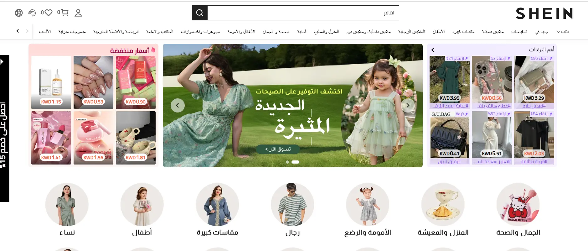 متجر Shein تجربة تسوق متميزة: يعد متجر شي إن أحد المتاجر الشهيرة في عالم البيع بالتجزئة، حيث يوفر العديد من المنتجات الخاصة بالنساء والرجال مع تخفيضات كبيرة تساعد على عمليات الشراء بكميات أكبر وتعزز عملية الشراء باستمرار والاشتراك في برامج الولاء.
