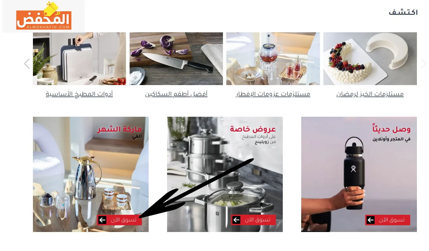 بالإضافة إلى إمكانية الحصول على خصومات هائلة على تجهيزات المطابخ مثل الشوايات، المقالي، أواني الطهي، أواني الفرن، طناجر الضغط، الطواجن، ومقالي البايلا بأسعار مغرية، بجانب أدوات ومستلزمات القهوة والشاي مثل ماكينات القهوة، حبوب القهوة، الكبسولات، غلايات الشاي، أوراق وأكياس الشاي، وأدوات التقديم بجودة عالية، كما يمكنك الحصول على أواني الخبز والمعجنات، قوالب الكيك، قوالب البان كيك، قوالب الوافل، وأدوات الخبز الأخرى بأسعار تنافسية.