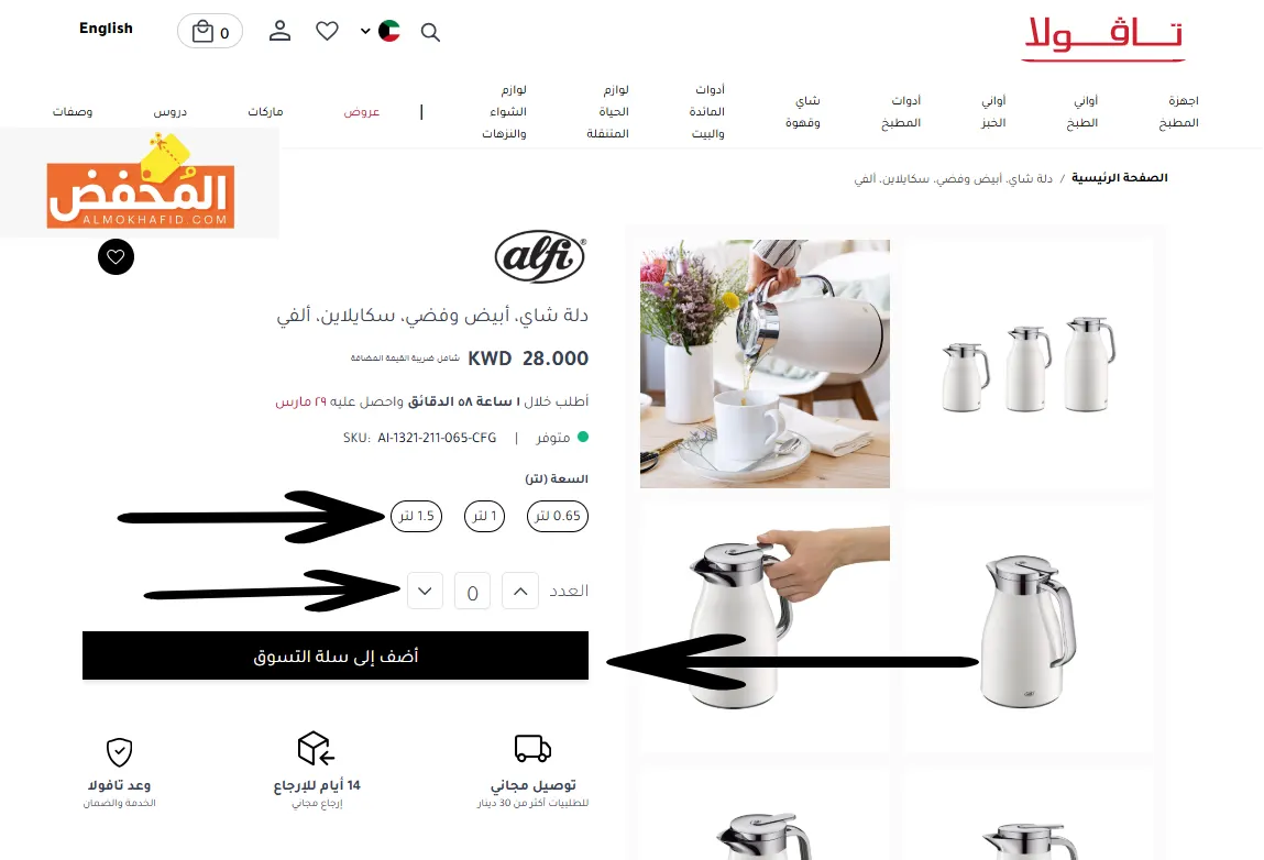 توصيل مجاني على الطلبات بقيمة 300 دينار كويتي أو أكثر.